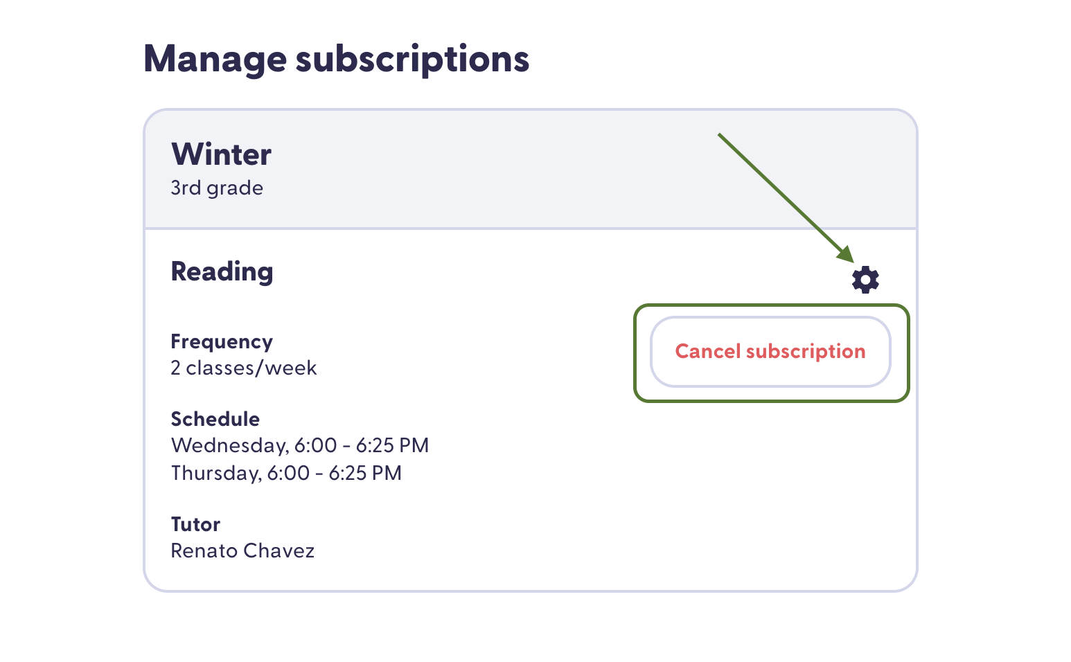 - Haga clic en el ícono del engranaje y seleccione 'Cancelar suscripción'