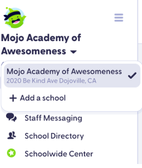 Le School Toggle vous permet de vous connecter à plusieurs écoles avec le même compte afin que vous puissiez rester connecté à vos communautés ! Avec le changement d’établissement, vous pouvez faire partie de plusieurs établissements et passer de l’un à l’autre sans changer de compte. Basculer entre les écoles vous donnera un accès facile aux messages du personnel, aux histoires des écoles et aux annuaires des écoles. Lorsque les enseignant(e)s accèdent à un établissement avec leur compte, leur affichage est filtré de sorte à ne voir que les classes appartenant à cette structure. Découvrez ci-dessous comment rejoindre plusieurs écoles à partir du Web, d'iOS et d'Android !