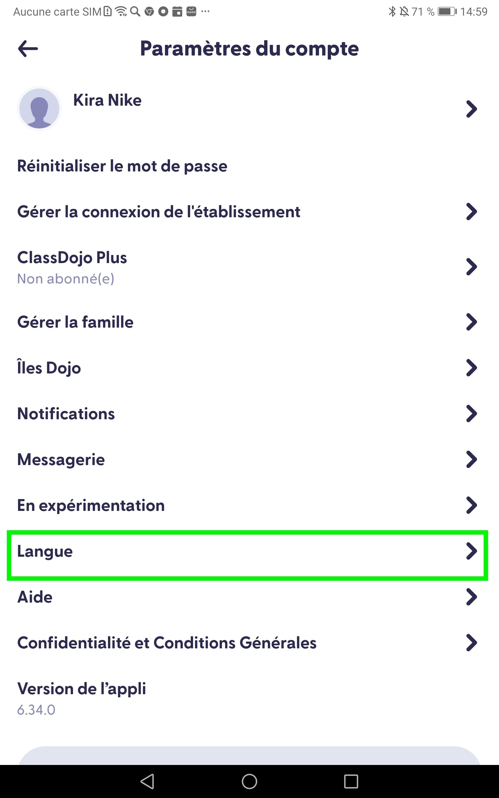 Voici comment vous pouvez changer la langue de votre compte sur le site web de ClassDojo :